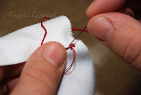 Закріплюємо робочу нитку на початку шва. Для цього виконуємо вузлик як показано на наступних фото або в будь-який зручний для вас спосіб.